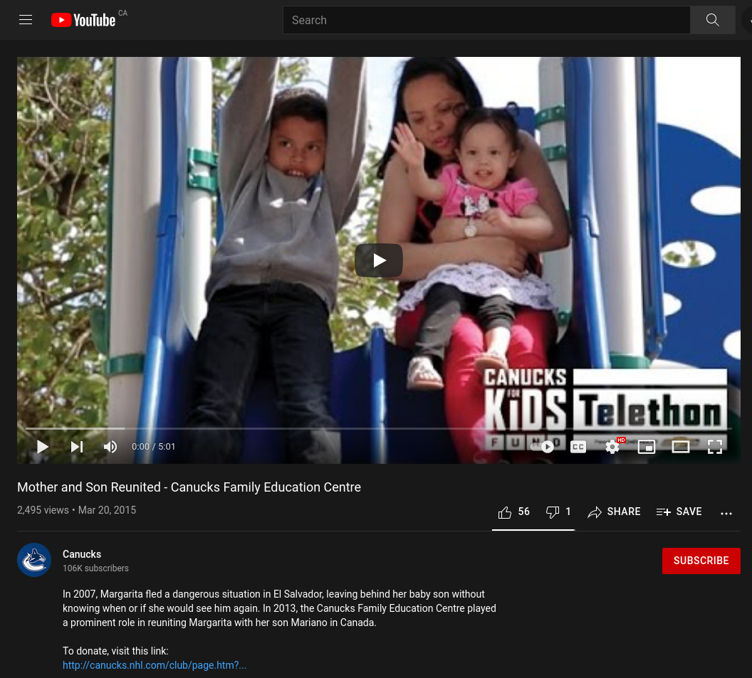 In 2007, Margarita fled a dangerous situation in El Salvador, leaving behind her baby son without knowing when or if she would see him again. In 2013, the Canucks Family Education Centre played a prominent role in reuniting Margarita with her son Mariano in Canada.